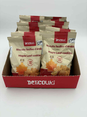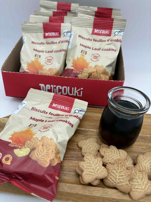 Your box contains 16 bags of pure butter maple leaf shortbread cookies of 56g each.