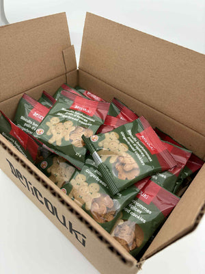 Your box includes: 32 individual packs of Gingerbread Man Cookies, 27 g each.